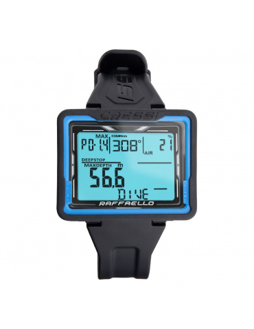 Вграденият цифров компас, яркият екран с подсветка и регулируемите настройки на PPO2 (1,2-1,6) правят Raffaello надежден партньор под водата. Ултратънкият му профил и дългата силиконова каишка гарантират сигурно прилягане със или без сух костюм. Със сменяема от потребителя батерия, която издържа до 4 години, и опционална Bluetooth връзка за синхронизиране с приложението Cressi, Raffaello предлага максимална свобода с минимална поддръжка.