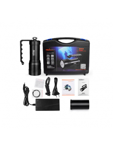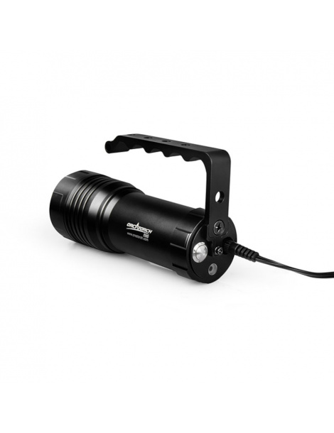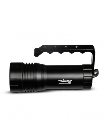 L'Orcatorch D860 est une lampe principale puissante équipée de trois LED CREE d'une puissance maximale très élevée allant jusqu'à 4200 lumens. La conception utilise des optiques professionnelles qui concentrent la lumière brillante dans un faisceau étroit avec un angle de 10 °, brillant simultanément avec un cadre large de 80 degrés. Grâce à cela, nous pouvons concentrer la majeure partie de la lumière à un seul endroit en même temps, tout en éclairant la zone environnante. La fonction de charge directe permet de charger la batterie sans la retirer. La lampe de poche est également équipée d'un indicateur LED de niveau de batterie. Très intuitif, facile à utiliser, extrêmement durable, l'interrupteur en titane est doté d'une fonction de verrouillage qui empêche la mise en marche accidentelle de l'appareil, son endommagement ou sa décharge. La poignée avec des ouvertures spéciales permet de connecter la lampe de poche à divers appareils tels que l'appareil photo ou le scooter sous l'eau. La profondeur d'immersion maximale est de 150 m.