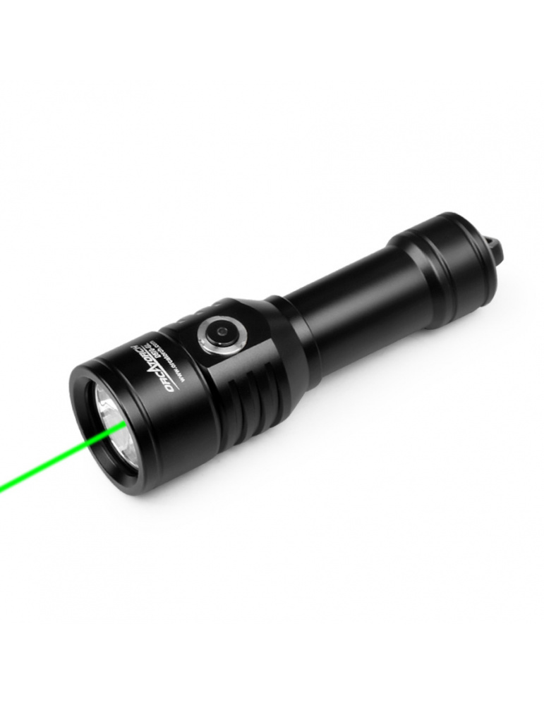 L'OrcaTorch D570-GL est une lampe de plongée haute performance conçue pour les plongeurs amateurs et professionnels. Elle combine un puissant faisceau blanc et un pointeur laser vert pour améliorer l'exploration sous-marine.