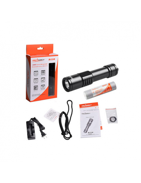 L'OrcaTorch D520 est une lampe de plongée légère dotée d'un interrupteur rotatif mécanique pour une plus grande fiabilité sous l'eau. Elle est équipée d'une LED américaine XM-L2 (U4) en blanc d'une puissance maximale de 1000 lumens, tandis que la température de couleur de la LED de 5000K assure une excellente reproduction des couleurs. Alimentée par une batterie 18650, son autonomie peut atteindre 2 heures. De plus, sa construction robuste résiste à la pression de l'eau et sa manipulation est aisée. La lampe de poche D520 sera parfaite pour la plongée récréative et technique.