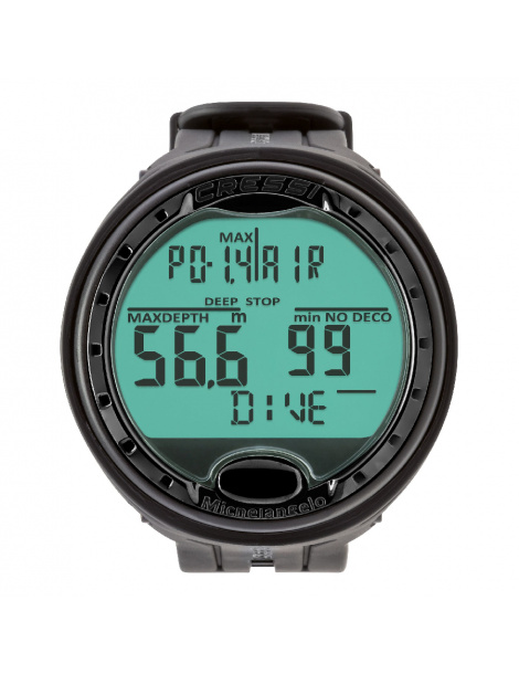 Duży, czytelny , podświetlany ekran i intuicyjny interfejs z jednym przyciskiem ułatwiają nawigację - nawet w rękawicach. Ramka ze stali nierdzewnej zwiększa trwałość, a wymienna osłona ekranu pomaga utrzymać wyświetlacz w nieskazitelnym stanie po każdym nurkowaniu. Dzięki wymienianej przez użytkownika baterii, opcjonalnej łączności Bluetooth i możliwości wyłączenia trybu nurkowania podczas nurkowania z rurką lub pływania, Michelangelo jest zarówno praktyczny, jak i profesjonalny - idealny dla prywatnych nurków lub zajętych wypożyczalni.