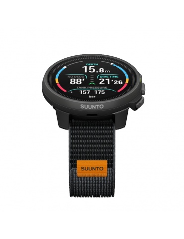 Ecranul AMOLED de înaltă luminozitate asigură o lizibilitate excepțională sub apă și la suprafață, depășind LCD-urile tradiționale în ceea ce privește contrastul și vizibilitatea. Carcasa sa durabilă, rezistentă la presiune, cântărește doar 81 g, cu o curea elastică din material textil pentru confort peste costumele de scufundare și un mecanism de eliberare rapidă pentru schimbarea siliconului. Fabricat în Finlanda cu tradiția Suunto în domeniul scufundărilor, este pregătit pentru condiții exigente.